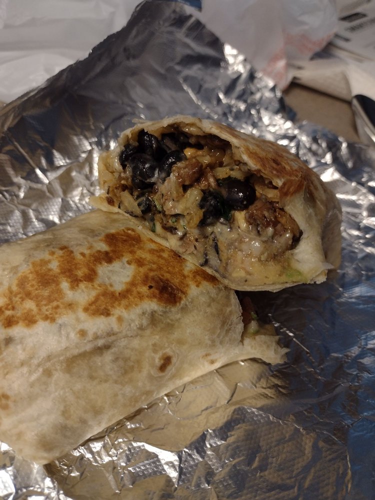 Rice, black beans, grill unions, grill tomatoes, lettuce, cilantro, sour cream and cheese